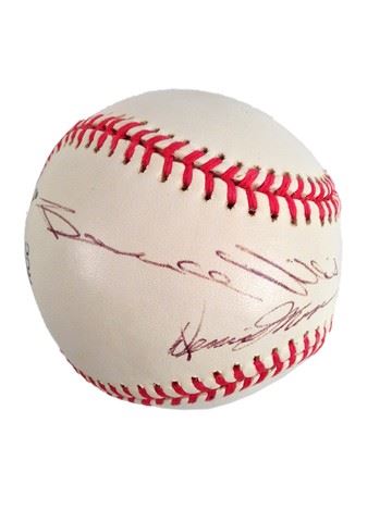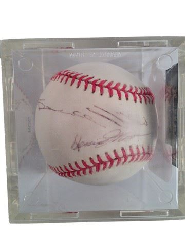 Demi Moore and Bruce Willis signed baseball in plastic display case (3"x3"). Known both for being famous actors in several movies and in their personal lives as well.