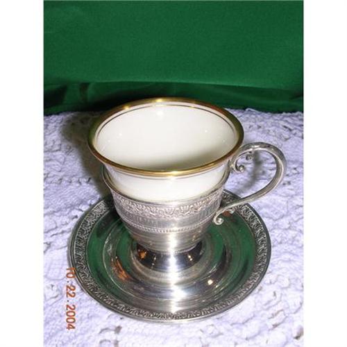 Exquisite Sterling Cups and Saucers with the Lenox gold-trimmed inserts. Includes 12 place settings plus 2 extra Lenox inserts. Mint condition.