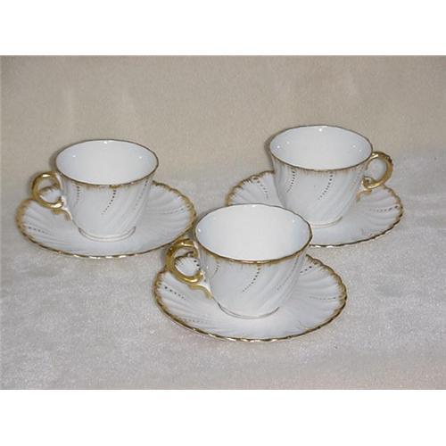 Three antique demitasse cups & saucers, Originally part of a larger set but just three remain. Beautiful condition, unidentified mark shown.