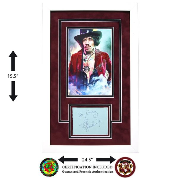 Jimi Hendrix (November 27, 1942–September 18, 1970),4.5 X 5.5signedautograph page. Large Bold signature across the autograph page. Jimi Hendr