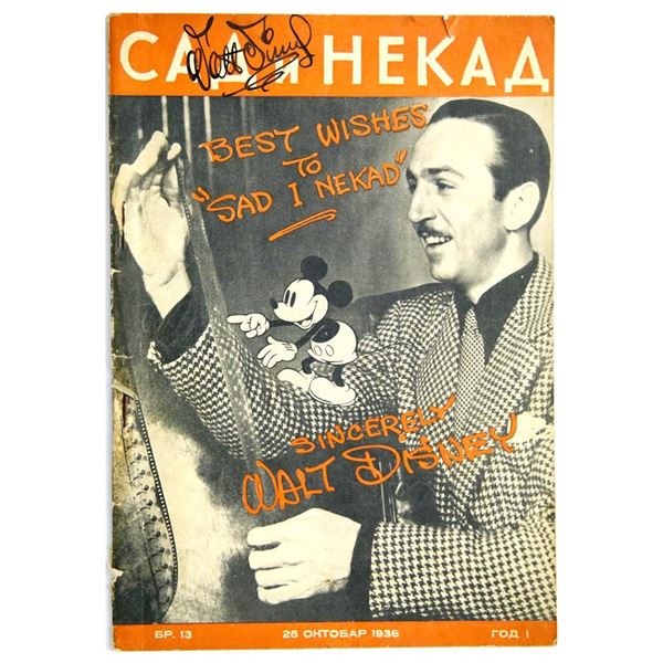 Walt Disney (1901-1966) signed Magazine from October 25, 1936. Boldly signed in black ink on the cover of the magazine. CYRILLIC EXYUGO MAGAZINE PHILI