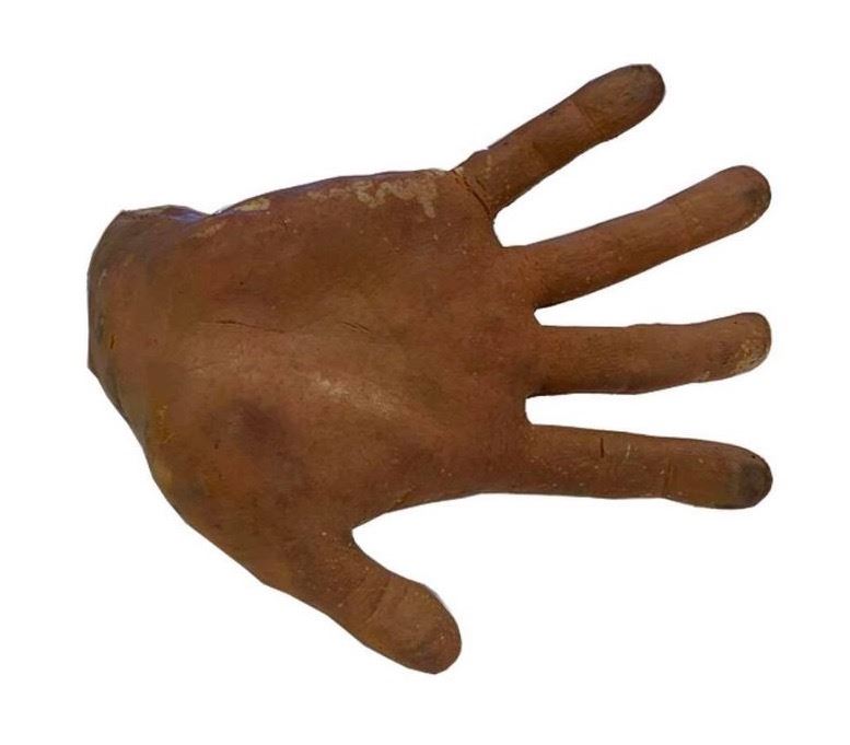 Frozen hand of the character of John Spartan, actor Sylvester Stallone used in the production of the 1993 action film Demolition Man. A police officer is brought out of suspended animation in prison to pursue an old ultra-violent nemesis who is loose in a non-violent future society. This faux hand was used in the large cylindrical tube where John was "frozen" for 100 years. This piece remains in excellent, production used condition.