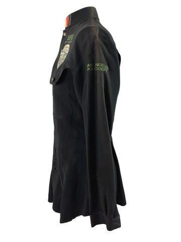 Demolition Man (1993) - Male background character, navy blue cotton button-down police style shirt.