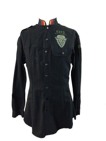 Demolition Man (1993) - Male background character, navy blue cotton button-down police style shirt.