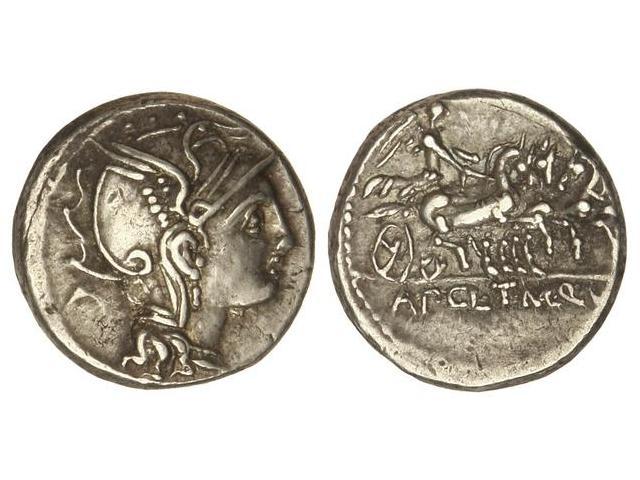 Denario. 110-109 a.C. CLAUDIA-2. Appius Claudius Pulcher. AR. Cal-423; FFC-564. MBC+.