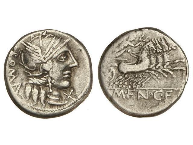 Denario. 123 a.C. FANNIA-1. Marcius Fannius C. f. 3,90 grs. AR. Cal-576; FFC-705. (MBC+).