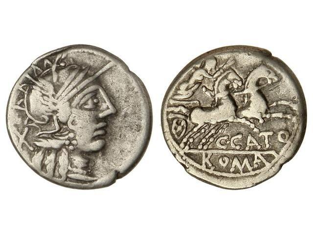 Denario. 123 a.C. PORCIA-1. C. Porcius Cato. AR. Cal-1196; FFC-1050. MBC-.