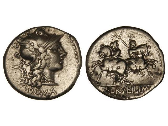 Denario. - 136 a.C. - SERVILIA-1. - C. Servilius M. f Augur. - (Pequeño grafiti en anverso). Cal-1275; FFC-1116. MBC/MBC-. - -
