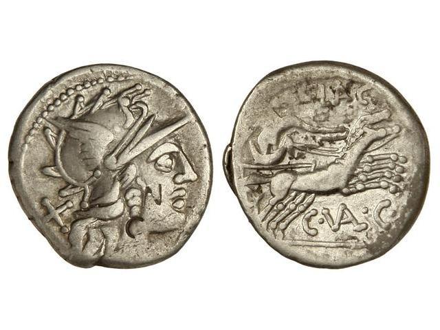 Denario. 140 a.C. VALERIA-7. C. Valerius C. f. Flaccus. 3,80 grs. AR. (Dos contramarcas en anverso). Cal-1320; FFC-1163. MBC/MBC-.