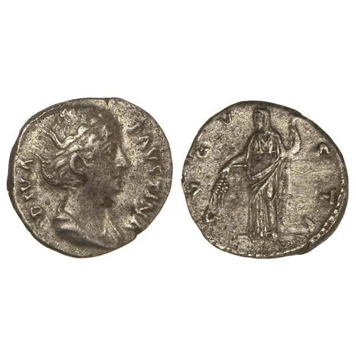 Denario. - 141 d.C. - FAUSTINA MADRE. - Anv.: DIVA FAVSTINA. Busto a derecha. Rev.: AVGVSTA. Ceres estante a izquierda, portando dos espigas y antorcha. 3,40 grs. (Pequeñas oxidaciones). C-78. (MBC+). - -