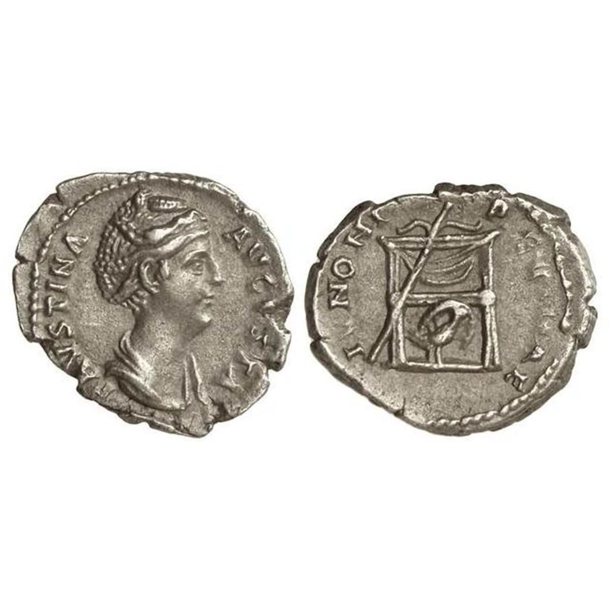 Denario. - 141 d.C. - FAUSTINA MADRE. - Anv.: FAVSTINA AVGVSTA. Busto a derecha. Rev.: IVNONI REGINAE. Trono con cetro apoyado, enfrente pavo real. 2,84 grs. S-221. EBC-. - -