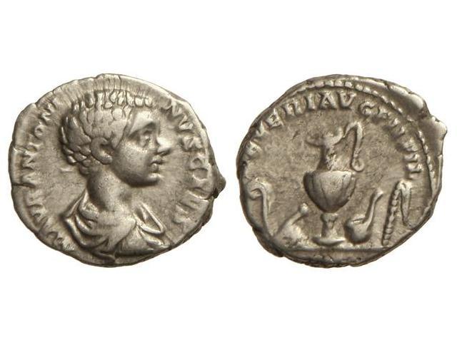 Denario. 196 d.C. CARACALLA. Acuñación de Septimio Severo. Anv.: M. AVR. ANTONINVS CAES. Busto con coraza a derecha. Rev.: SEVERI AVG. PII FIL. Bastón de augur, cuchillo, pátera, vaso de sacrificio, símpulo y aspersorio. 3,542 grs. C-196. MBC.