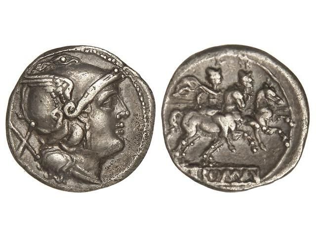 Denario. 200-190 a.C. ANÓNIMA-2. 3,25 grs. Cal-1; FFC-7. EBC-/MBC+.