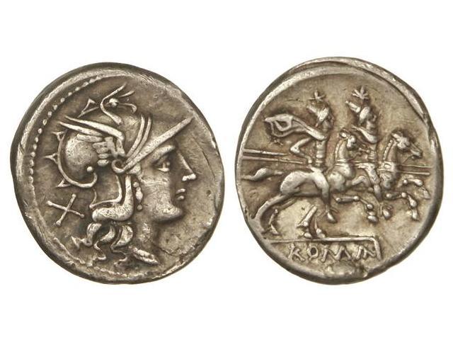 Denario. 200-190 a.C. ANÓNIMO-2. Cal-1; FFC-7. MBC/MBC+.
