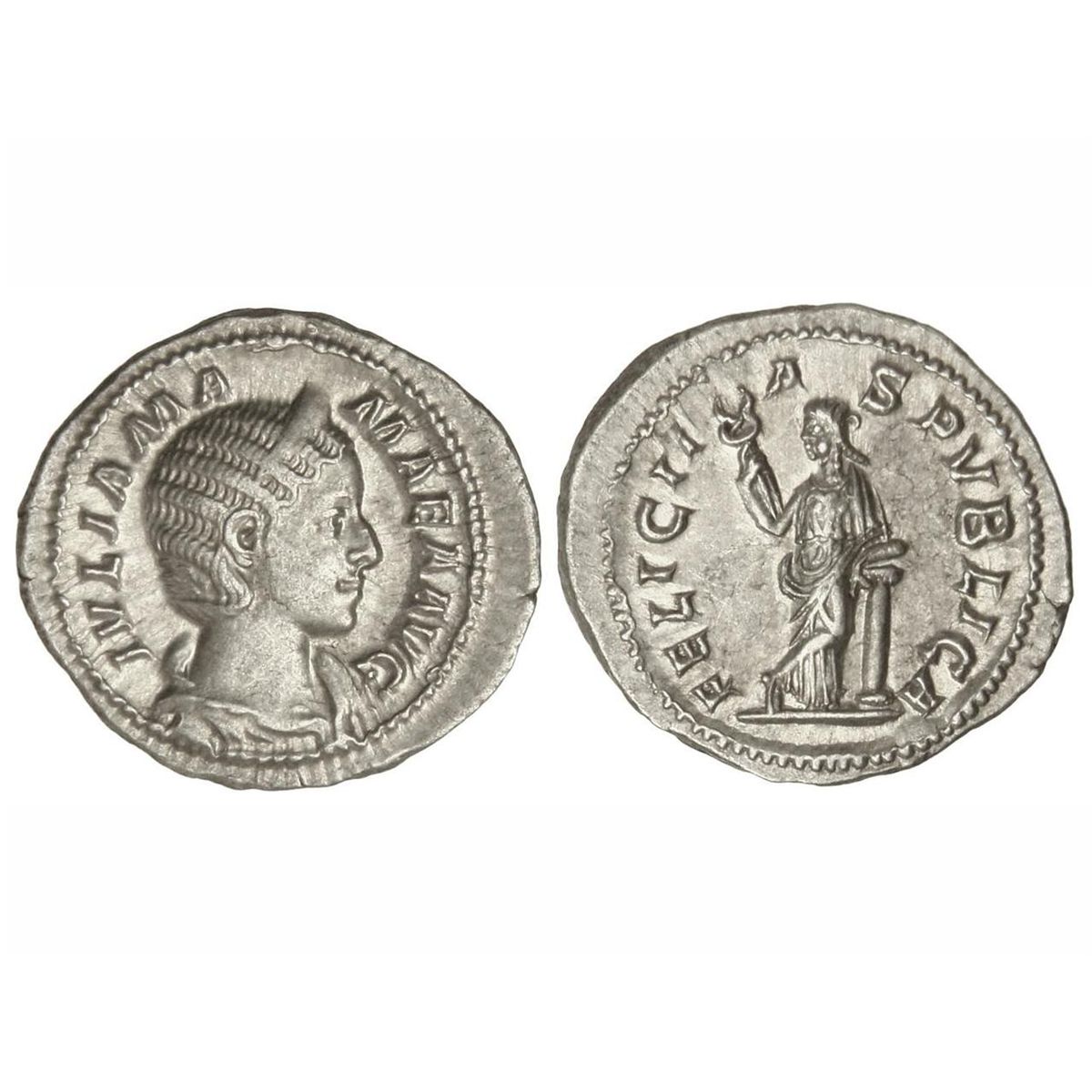 Denario. - 235 d.C. - JULIA MAMAEA. - Anv.: IVLIA MAMAEA AVG. Busto a derecha. Rev.: FELICITAS PVBLICA. Felicidad en pie de frente. 3,66 grs. C-17. EBC-/EBC. - -