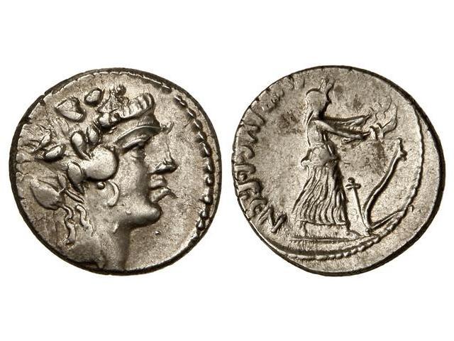 Denario. 48 a.C. VIBIA-16. C. Vibius C. f. C. n. Pansa. Rev.: Ceres en pie a derecha, con dos antorchas, delante arado, detrás C. VIBIVS C. F. C. N. (Ligeramente descentrada en anverso. Acuñación algo floja en parte). ESCASA. Cal-1369; FFC-1216. EBC-.