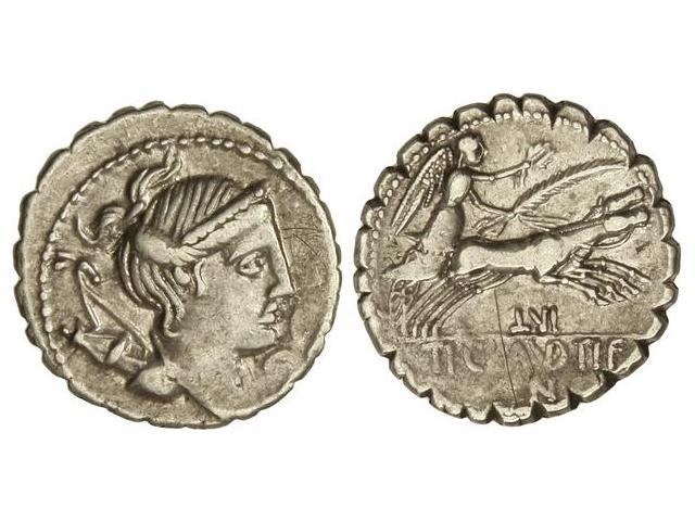 Denario. 79 a.C. CLAUDIA-5. Ti. Caludius Nero. Rev.: Victoria en biga a derecha, debajo LXI TI. CLAVD. TI. F. CN. 3,90 grs. Cal-426; FFC-567. MBC.