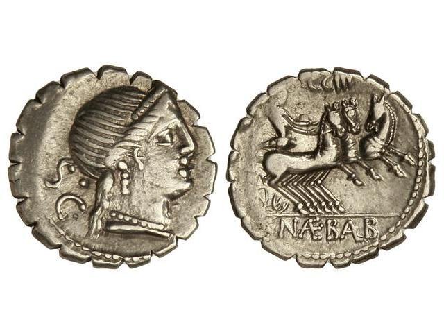 Denario. - 79 a.C. - NAEVIA-6. - C. Naevius Balbus. - Rev.: Victoria en triga a derecha encima número. En exergo: C. NAE. BALB. 3,90 grs. Cal-1041; FFC-937. MBC+/MBC. - -