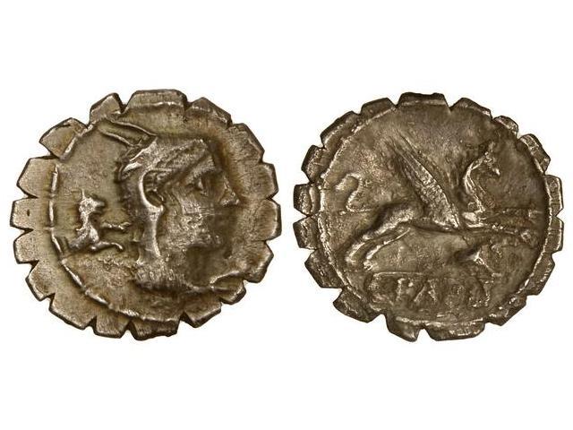 Denario. 79 a.C. PAPIA-1. L. Papius. Anv.: Cabeza de Juno Sospita a derecha, tocado con piel de ciervo, detrás símbolo. (Concreciones y oxidaciones). Cal-1057; FFC-952. MBC.