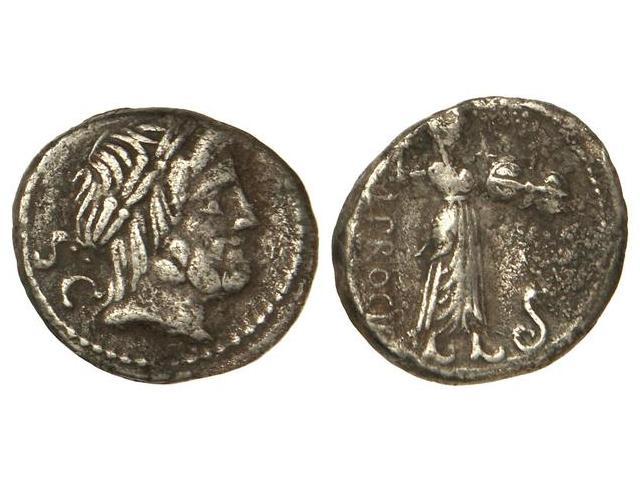 Denario. 80 a.C. PROCILIA-1. L. Procilius F. Rev.: Juno Sospita a derecha con escudo y lanza, delante serpiente, detrás L. PROCILI. F. 4 grs. (Oxidaciones). Cal-1226; FFC-1083. (MBC-).