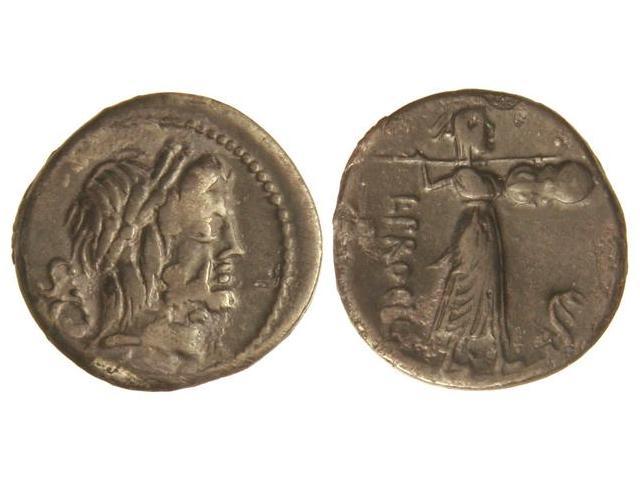 Denario. 80 a.C. PROCILIA-1. L. Procilius f. Rev.: Juno Sospita a derecha con escudo y lanza, delante serpiente. L. PROCILI. F. 3,80 grs. AR. Pátina negra. (Leves oxidaciones). Cal-1226; FFC-1083. MBC-.