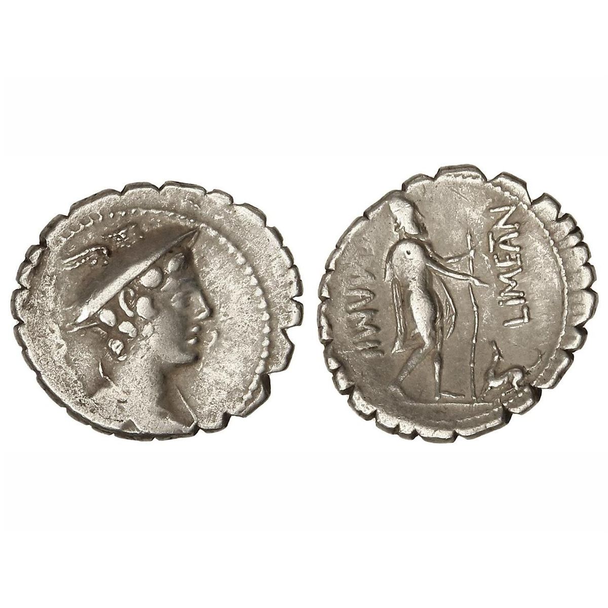 Denario. - 82 a.C. - MAMILIA-6. - C. Mamilius Limetanus. - Rev.: Ulises a derecha con su perro Argos. Leyenda: C. MAMIL LIMETAN. Cal-920; FFC-835. MBC+. - -