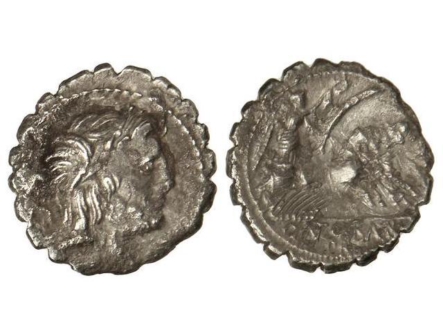 Denario. 83-82 a.C. ANTONIA-1. Q. Antonius Balbus. Anv.: Cabeza laureada de Júpiter a derecha, detrás S. C. 3,50 grs. (Oxidaciones). Cal-139; FFC-156. (MBC).
