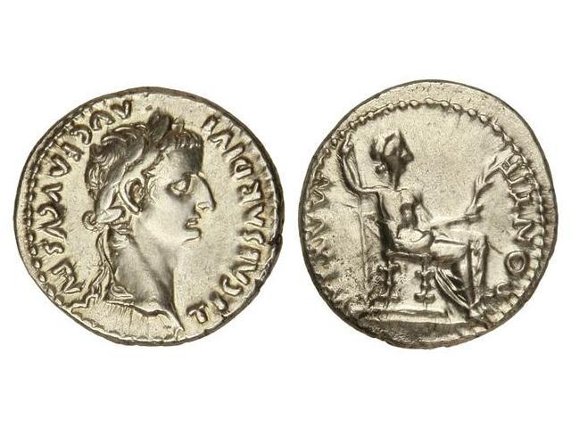 Denario. Acuñada 14-37 d.C. TIBERIO. Anv.: TI. CAESAR DIVI. AVG. F. AVGVSTVS. Cabeza laureada a derecha. Rev.: PONTIF. MAXIM. Livia sentada a derecha. 3,80 grs. AR. Restos de brillo original. C-16. EBC.