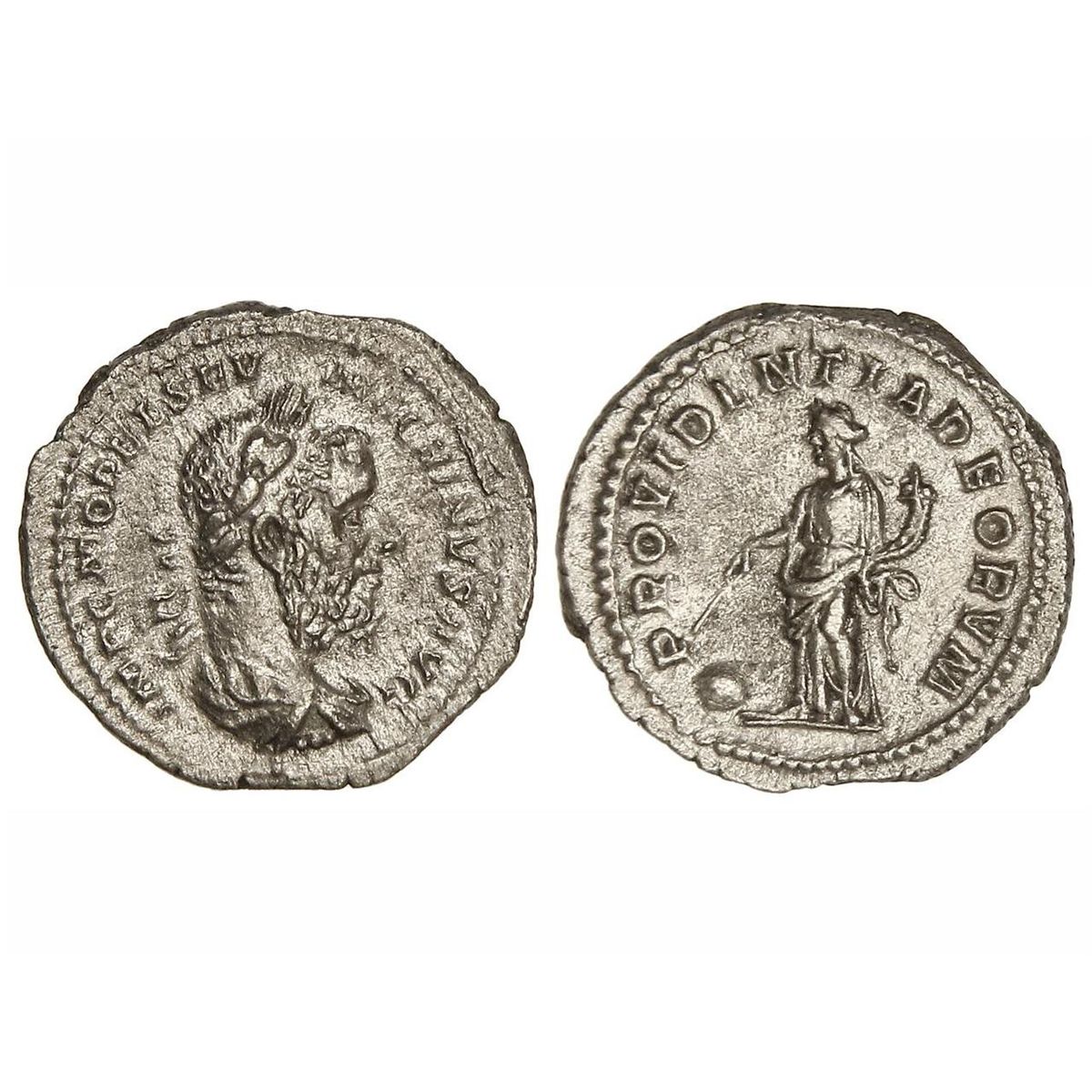 Denario. - Acuñada 217-218 d.C. - MACRINO. - Anv.: IMP. C. M. OPEL. SEV. MACRINVS. AVG. Busto a derecha. Rev.: PROVIDENTIA PEORVM. Providencia a izquierda con cornucopia, a los pies globo. C-108. EBC-. - -