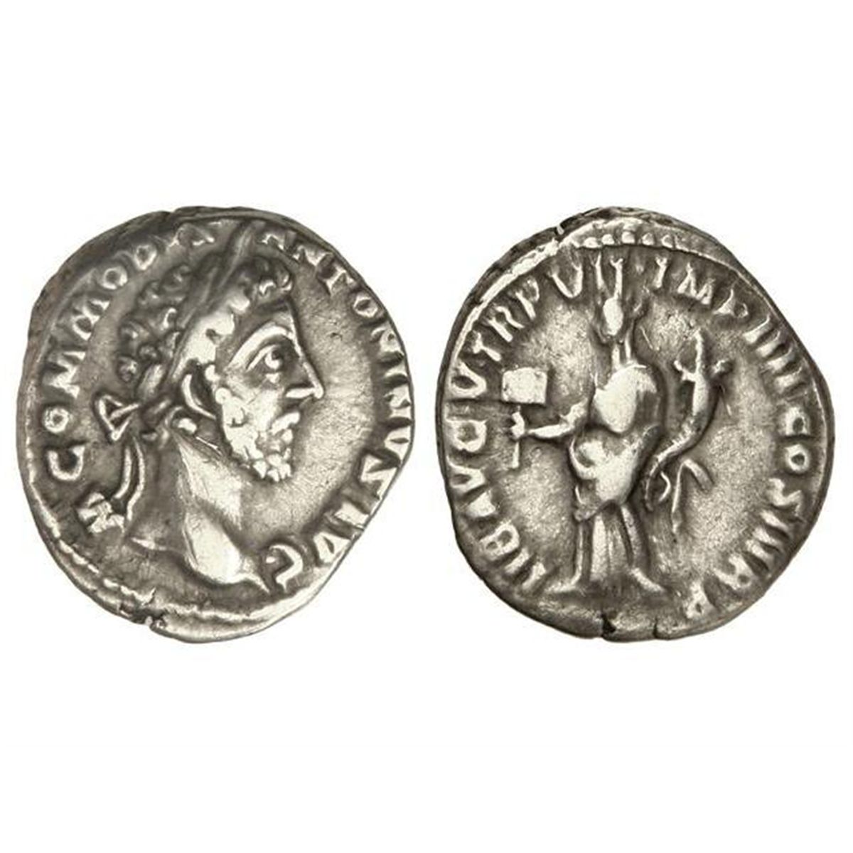 Denario. - Acuñada el 180-183 d.C. - CÓMODO. - Anv.: M. COMMODVS ANTONINVS AVG. Cabeza laureada a derecha. Rev.: LIB. AVG. V TR. P. VII IMP. IIII COS. III P. P. Liberalidad en pie a izquierda con ábaco y cornucopia. 3,70 grs. AR. C-311. MBC+/MBC. - -