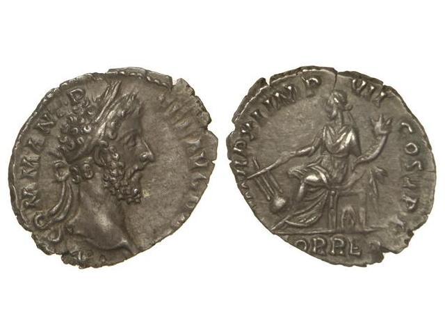 Denario. - Acuñada el 184-189 d.C. - CÓMODO. - Anv.: M. COMM. ANT. P. FEL. AVG. BRIT. Cabeza laureada a derecha. Rev.: FORT. RED. P. M. TR. P. XI IMP. VII COS. V. Fortuna sentada a izquierda con cornucopia y timón, rueda bajo el asiento. 2,60 grs. Pátina. C-150. EBC. - -