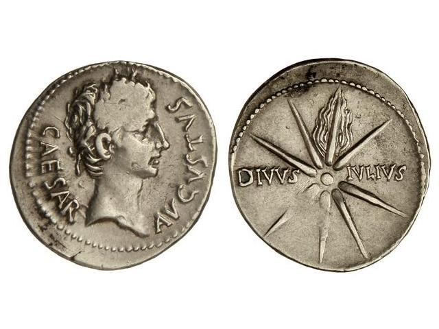 Denario. - Acuñada el 19-18 a.C. - AUGUSTO. - CAESAR AUGUSTA. - Anv.: Cabeza laureada de Augusto a derecha. CAESAR AVGVSTVS. Rev.: Cometa de ocho rayos. En el campo DIVVS IVLIVS. 3,60 grs. (Acuñación floja en parte). FFC-78. (MBC+). - -