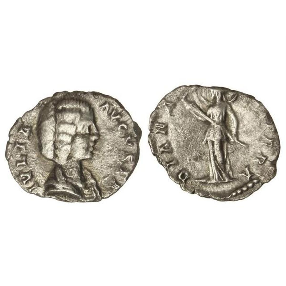 Denario. - Acuñada el 196-211 d.C. - JULIA DOMNA. - Anv.: IVLIA AVGVSTA. Busto a derecha. Rev.: DIANA LVCIFERA. Diana en pie a izquierda con antorcha. 2 grs. (Oxidaciones). C-27. (MBC). - -