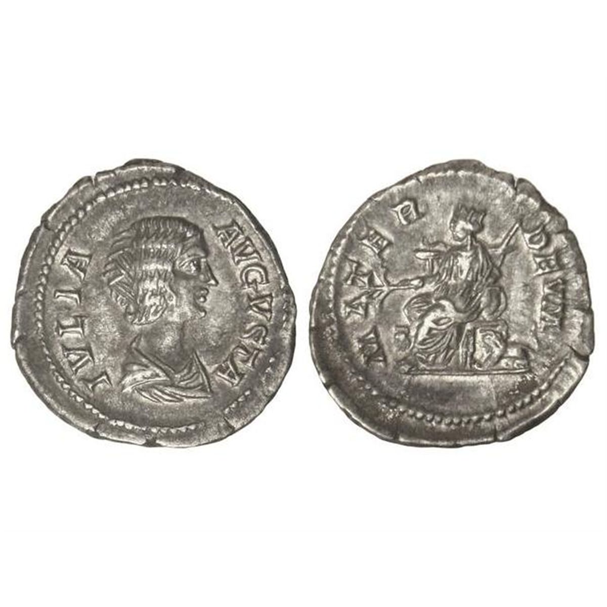 Denario. - Acuñada el 196-211 d.C. - JULIA DOMNA. - Anv.: IVLIA AVGVSTA. Busto a derecha. Rev.: MATER DEVM. Cibeles sentada a izquierda sobre un trono flanqueado por dos leones. 2,22 grs. C-123. MBC+. - -