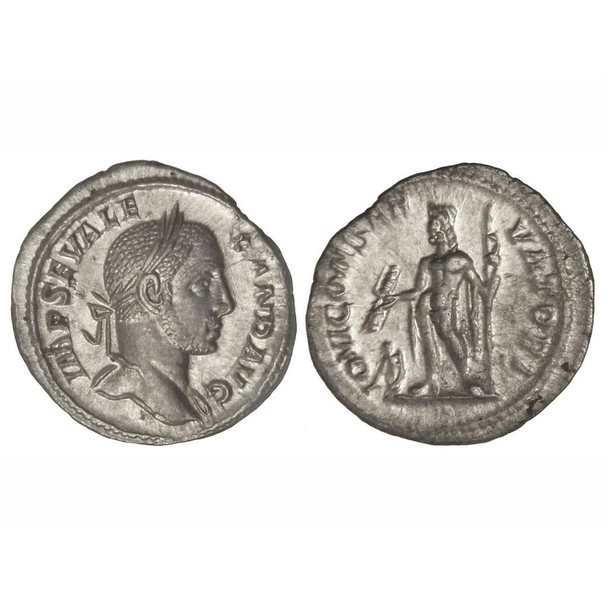 Denario. - Acuñada el 228-231 d.C. - ALEJANDRO SEVERO. - Anv.: IMP. SEV. ALEXAND. AVG. Busto laureado a derecha. Rev.: IOVI CONSERVATORI. Júpiter en pie a izquierda ofreciendo protección a Alejandro Severo. 3,13 grs. C-73. EBC+/EBC. - -