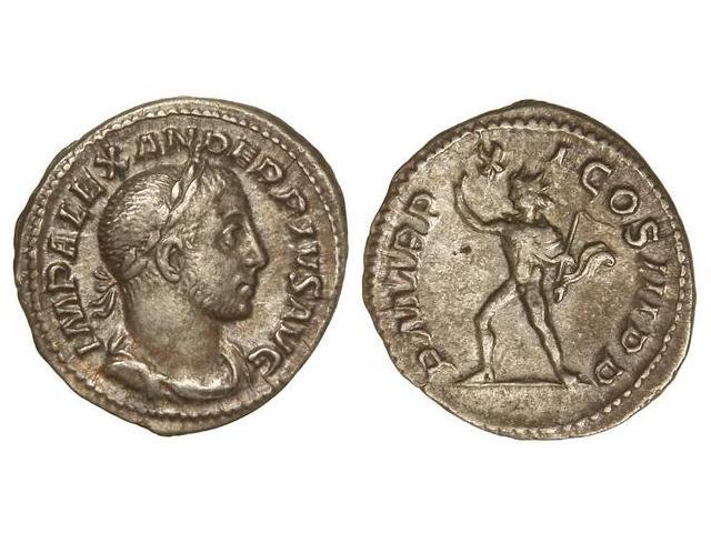 Denario. Acuñada el 232 d.C. ALEJANDRO SEVERO. Anv.: IMP. ALEXANDER PIVS AVG. Busto laureado a derecha. Rev.: P. M. TR. P. XI COS. III P. P. Sol en pie a izquierda. C-427. MBC+.