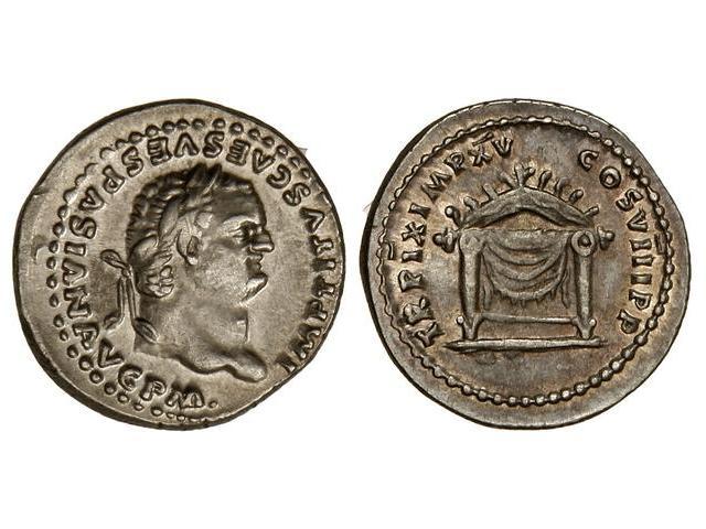 Denario. Acuñada el 79-80 d.C. TITO. Anv.: IMP. TITVS CAES. VESPASIAN. AVG. P. M. Busto a derecha. Rev.: Trono con respaldo semicircular. 3,50 grs. Restos de brillo original. ESCASO. C-311. EBC.