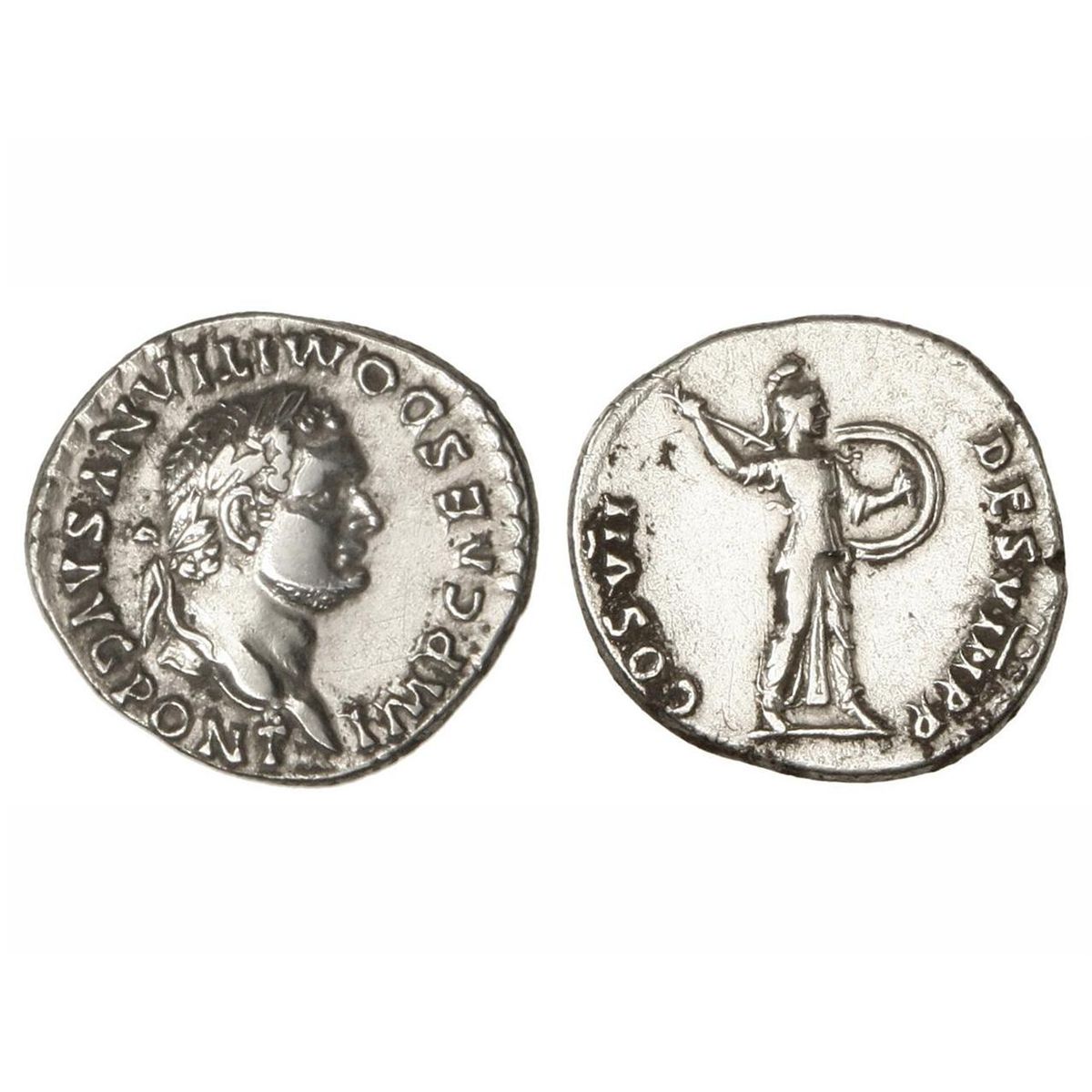 Denario. - Acuñada el 81 d.C. - DOMICIANO. - Anv.: IMP. CAES. DOMITIANVS AVG. PONT. Busto laureado a derecha. Rev.: COS. VII DES. VIII P.P. (Leves rayitas). C-560a. MBC+/MBC. - -