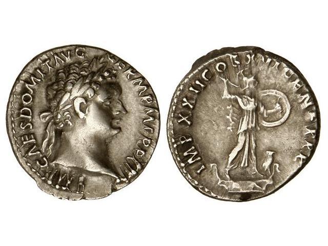 Denario. Acuñada el 85 d.c. DOMICIANO. Anv.: IMP. CAES. DOMIT. AVG. GERM. P. M. TR. P. IIII. Rev.: Minerva en barco, a sus pies un pájaro. 3,50 grs. C-180. EBC-/MBC+.