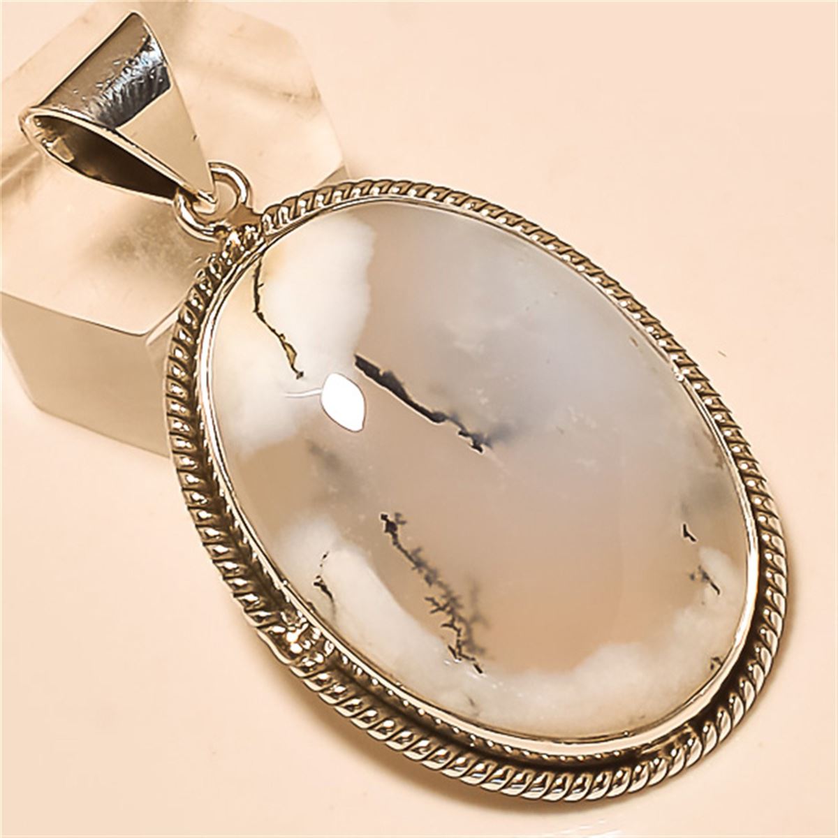 Dendrite Opal Pendant Solid Sterling Silver Length:1.8 inch Weight:12 gram #P-195