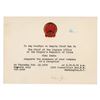All lots sold by RR Auction are accompanied by an Auction Certificate ("AC”). On any lot presented with an AC issued by RR Auction, the certification is only as to its attribution to the person or entity described or to the lot's usage and only as explicitly stated therein (the "Certification of Authenticity”), to the exclusion of any other warranties, express or implied, including but not limited to those pursuant to the Uniform Commercial Code. The Certification of Authenticity inures only to the original Bidder (as shown in RR Auction's records). Bidder may not transfer, assign, or otherwise convey the Certification of Authenticity, and such purported transfer, assignment, or conveyance shall be null and void. The Certification of Authenticity is valid from date of the Auction in which Bidder was awarded the lot (the "Auction Date”) until five (5) years after the Auction Date, without exception.