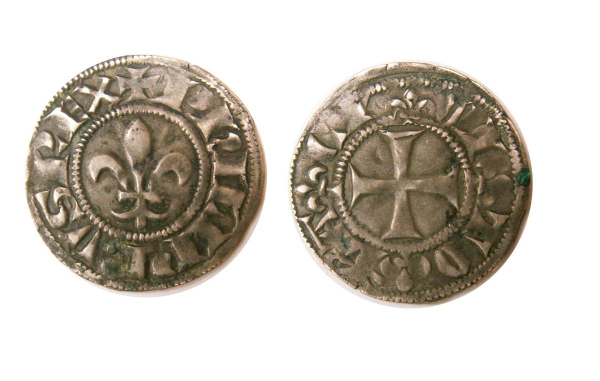Denier Toulousain; Philippe III. A/ PHILIPVS REX. Fleur de lis. R/ TO LA CI VI. Croix fleurdelisée.…