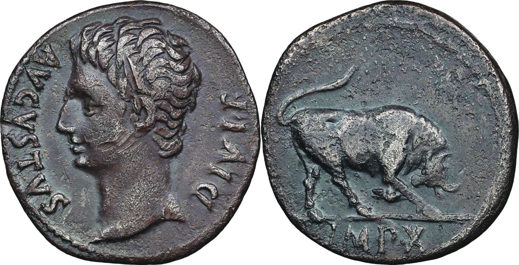 Revers IMP•X Taureau chargeant à droite Ref : RIC 167b, BMC 455, CBN 1386, C. 139