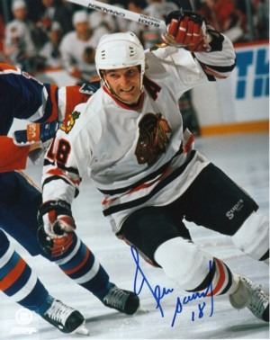 Denis Savard played in the National Hockey League from 1980 to 1997, and was elected to the Hockey Hall of Fame in 2000. He has also served as head coach of the Chicago Blackhawks of the NHL, and now serves as an ambassador for the Blackhawks' organization. Denis Savard has hand autographed this Chicago Blackhawks 8x10 Color Photo. Certificate of Authenticity from Athlon Sports. photo has minor ding/bend, in upper right corner, sold as is, no returns.