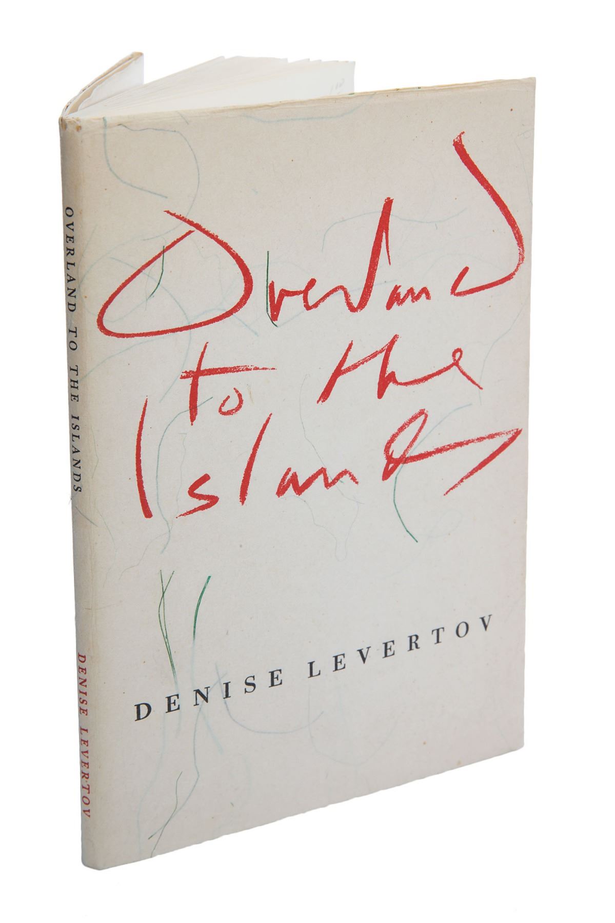 Group of three books by Denise Levertov: an 'author's edition' of Overland to the Islands, numbered 30/50, published by Jonathan Williams in 1958, signed on the front flap of the dust jacket and on the title page by Levertov; an unsigned 'regular edition' of Overland to the Islands, printed in an edition of 450, published by Jonathan Williams in 1958; and an unsigned first edition of With Eyes at the Backs of Our Heads, published by New Directions in 1959. In overall very good to near fine condition.