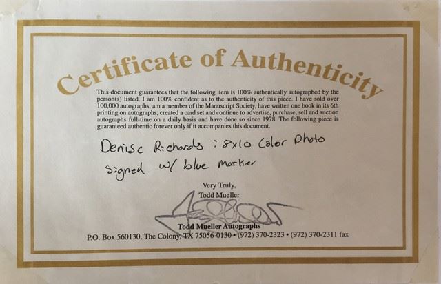 Denise Richards signed photo with COA (8"x10"). Signature obtained in person.