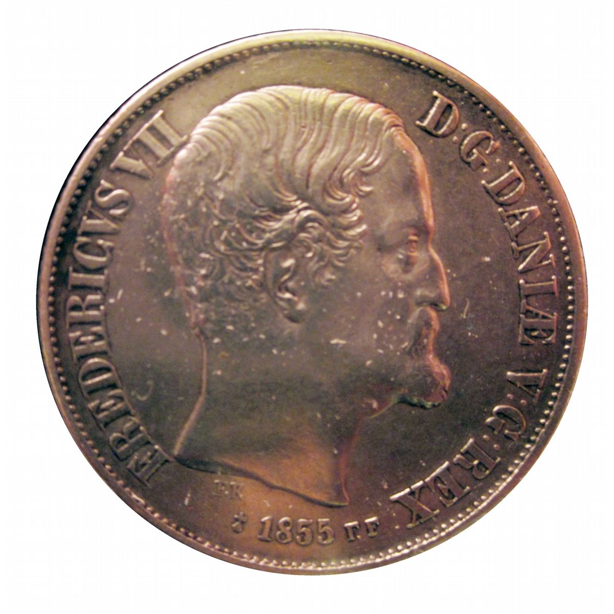 Denmark; 1 Rigsdaler 1855 FK/FF Orb, VF-30 KM #760.2.