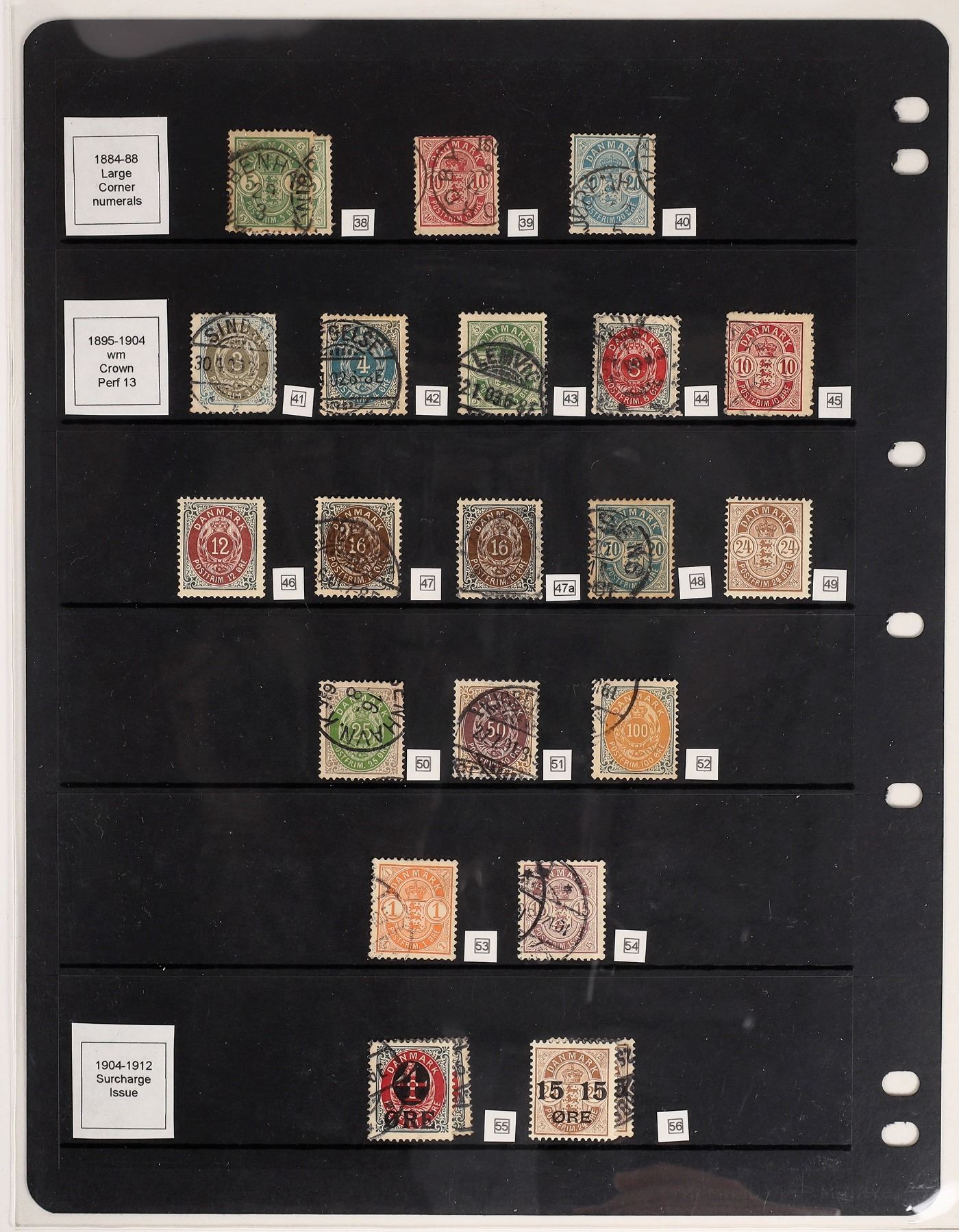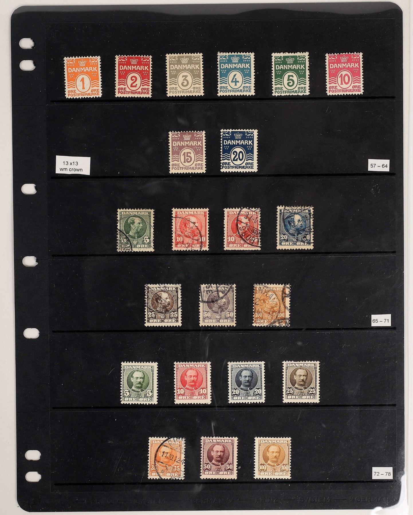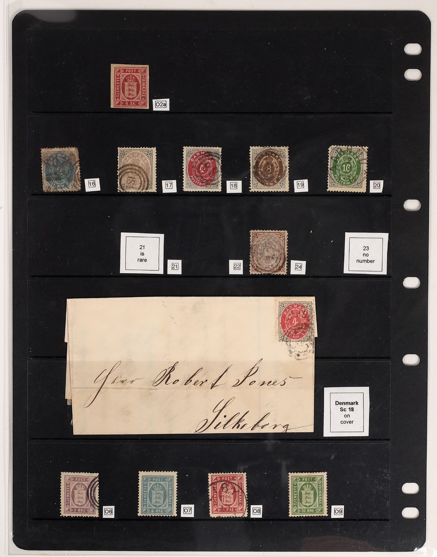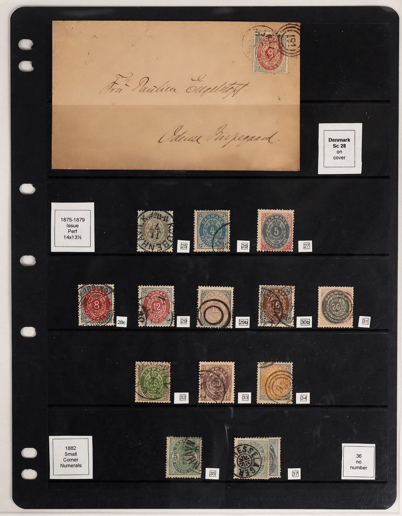 Denmark. 1851-1912 issues, a virtually complete run (Scott #1-82 complete ex #21-2), noted 1851 2rs blue (good margins, small corner thin), 1863 rouletted 16s, owner's 2005 Scott $3,600+, please see scans, also seven covers, best with 1857 8s yellow green (#5a), others with 1851 4rbs, 1854 4s, 1863 4s, 1868 2s imperf (#11a), 1864 4s, 1870 4s and 1878 8ore. Finally Danish West Indies (Scott $998 incl. 1873 4c, 1879 50c, and 1882 Ship Brokers 2c stationery to Brazil), solid group.