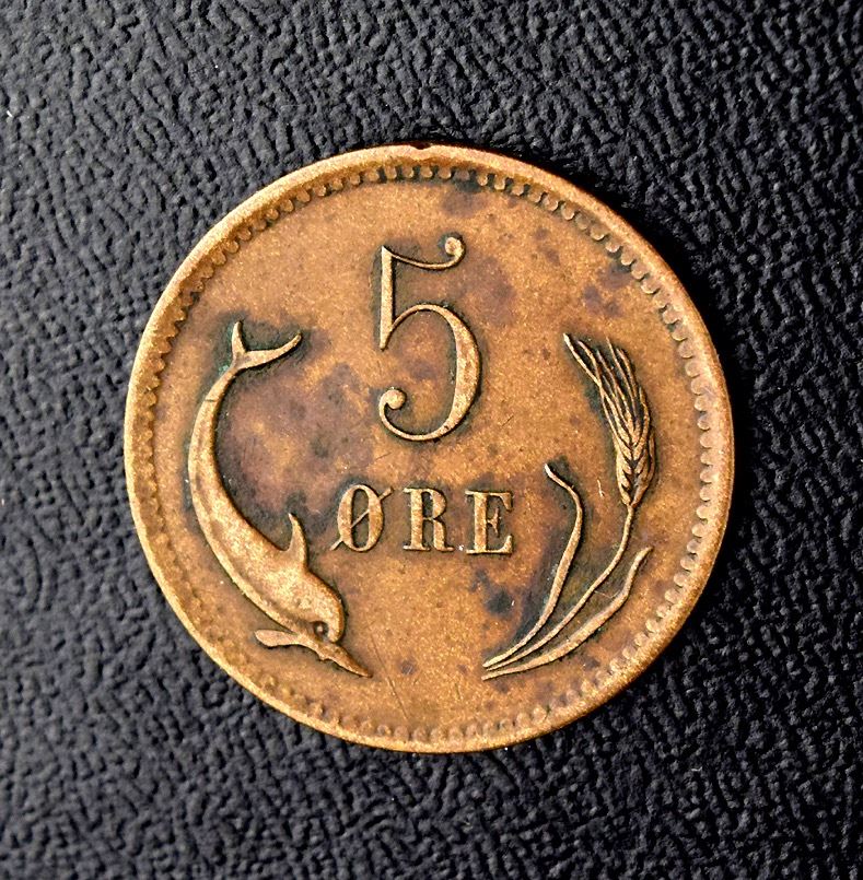 Denmark 1875 cs 5 Ore, EF, Key date.