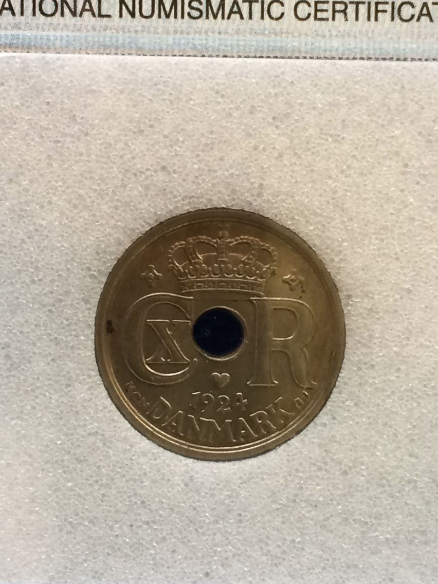 Denmark 25 Ore 1924; NNC certified MS-63.